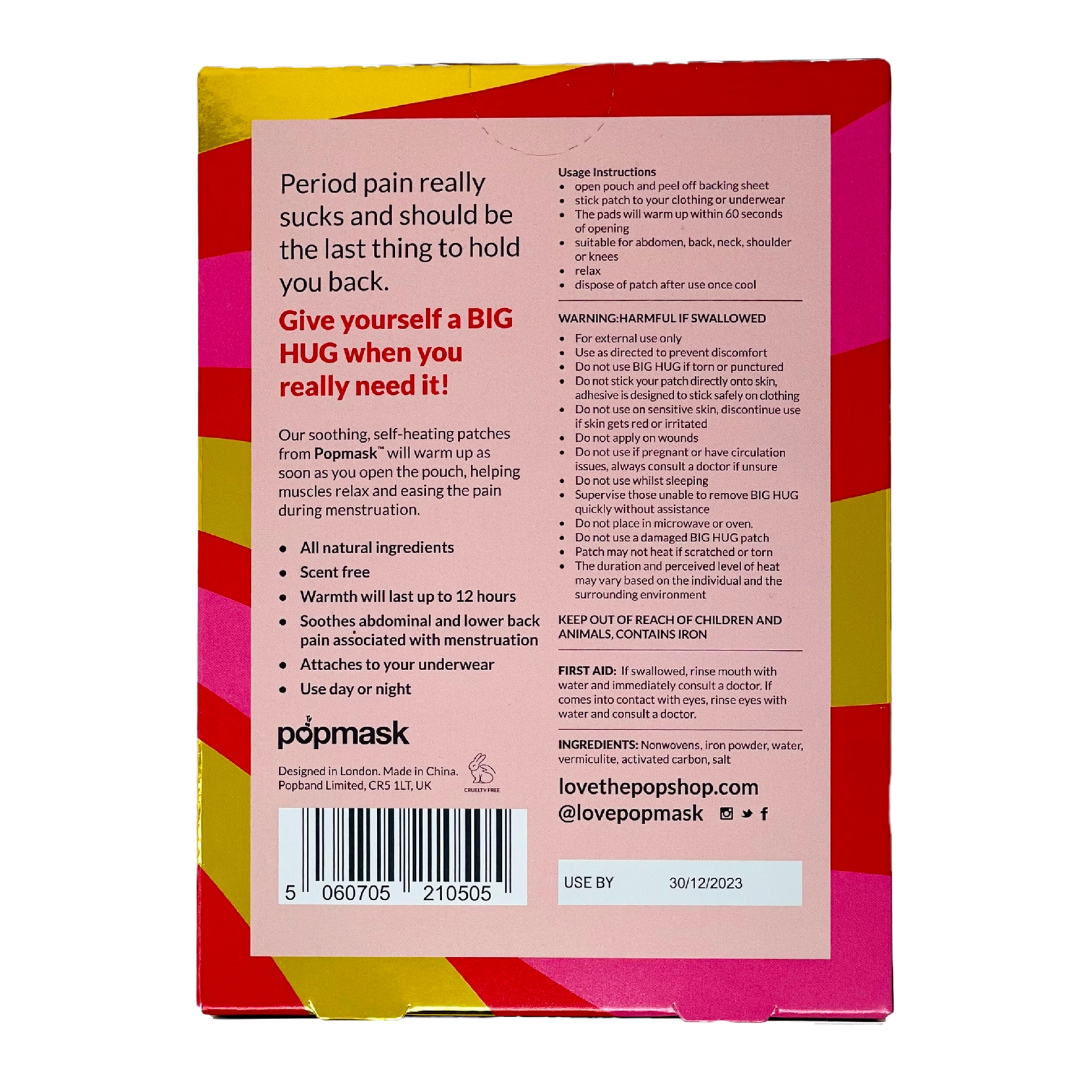 Periods suck and we need to get on with life, no matter what time of the month it is. Our self-heating patches ease aches andpains associated with menstrual cramps, sooth your body and enjoy your day! Simply stick the patch onto clothing or underware in your chosen position and feel the gentle warmth for up to 12 hours!