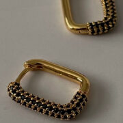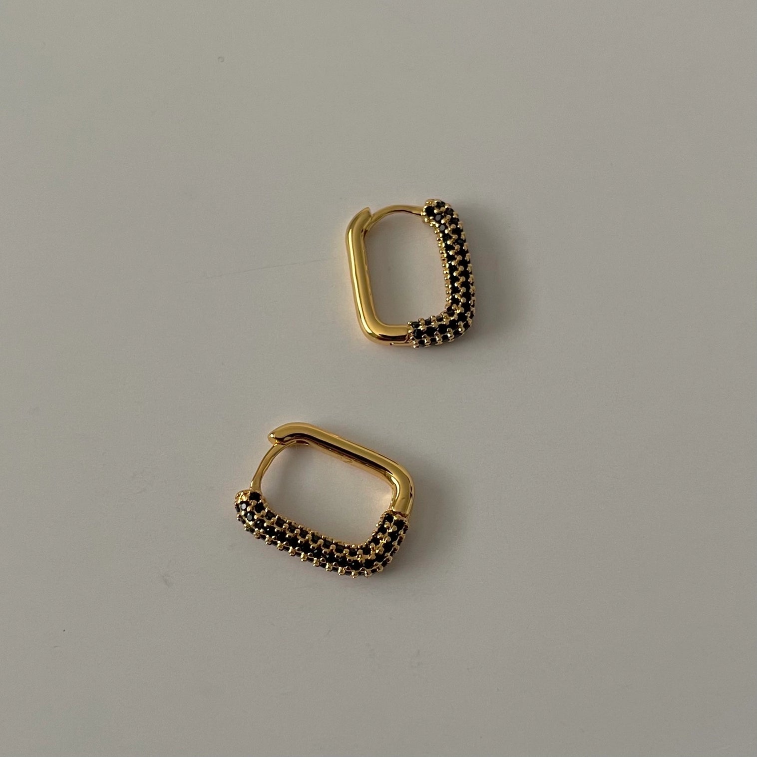 Sleek and modern rectangle stone earrings featuring black zirconia set in gold. These minimalist studs add just the right touch of edge and elegance, perfect for day-to-night wear. A versatile addition to any jewelry collection.