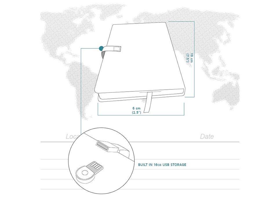 Be inspired to record your most epic adventures and travel memories with this sleek, snappy travel journal. Oh, and did we mention it includes an integrated removable 16GB USB memory stick for storing your images, video, and voice notes?