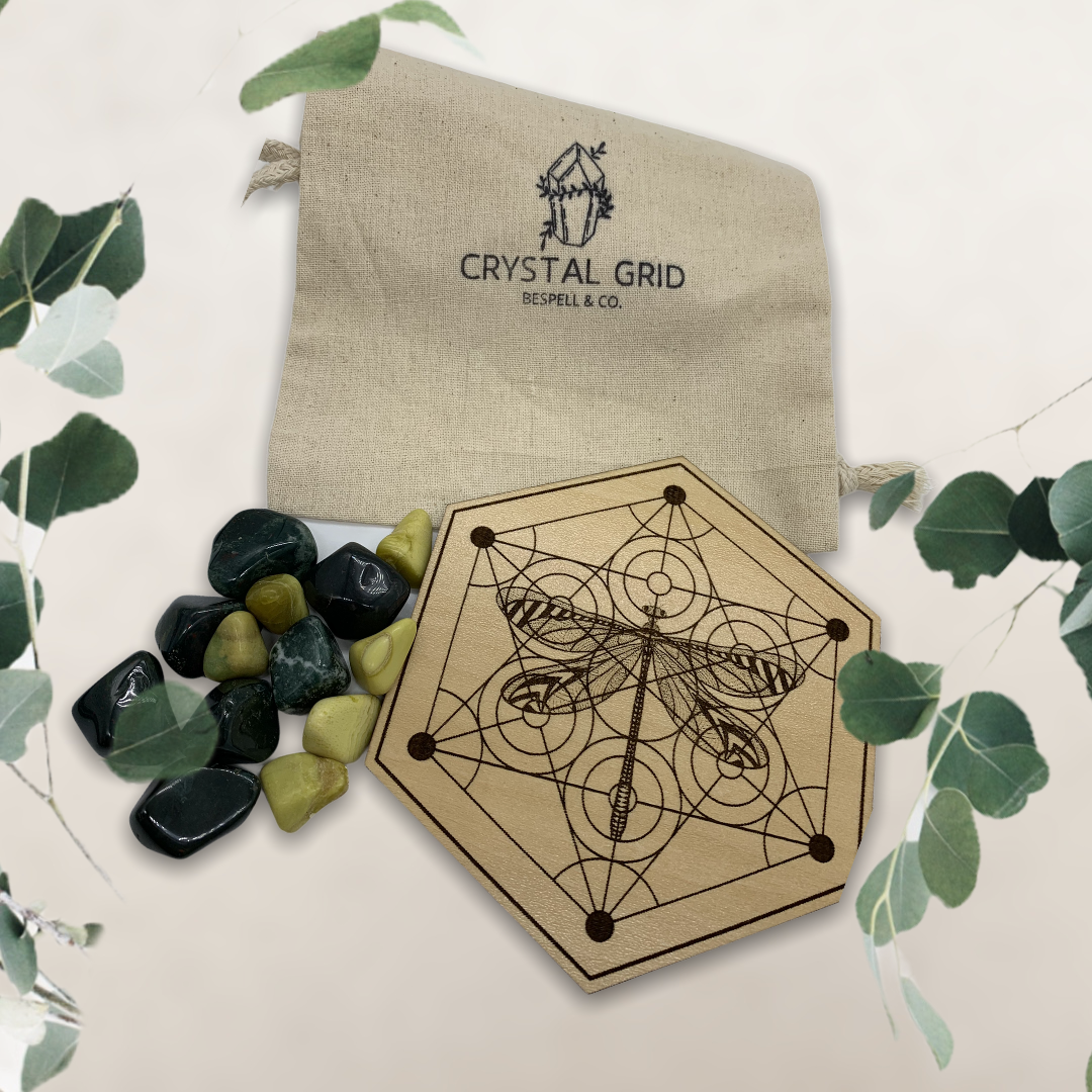 Do you desire to connect stronger to the elemental/fairy kingdom? This Dragonfly Metatron’s cube along with 13 crystals can help.
