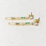 A light delicate chain earring adorned with paraiba cz and labradorite. A delicate and unique design that you won’t be taking off! It is made of 14K gold vermeil and measuring approximately 2.5 inches.