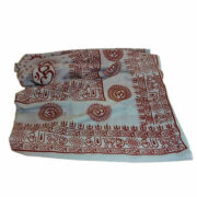 Each shawl is hand-printed by devotional artisans of India on a 100% natural jute fabric, providing employment for marginalized artisans.