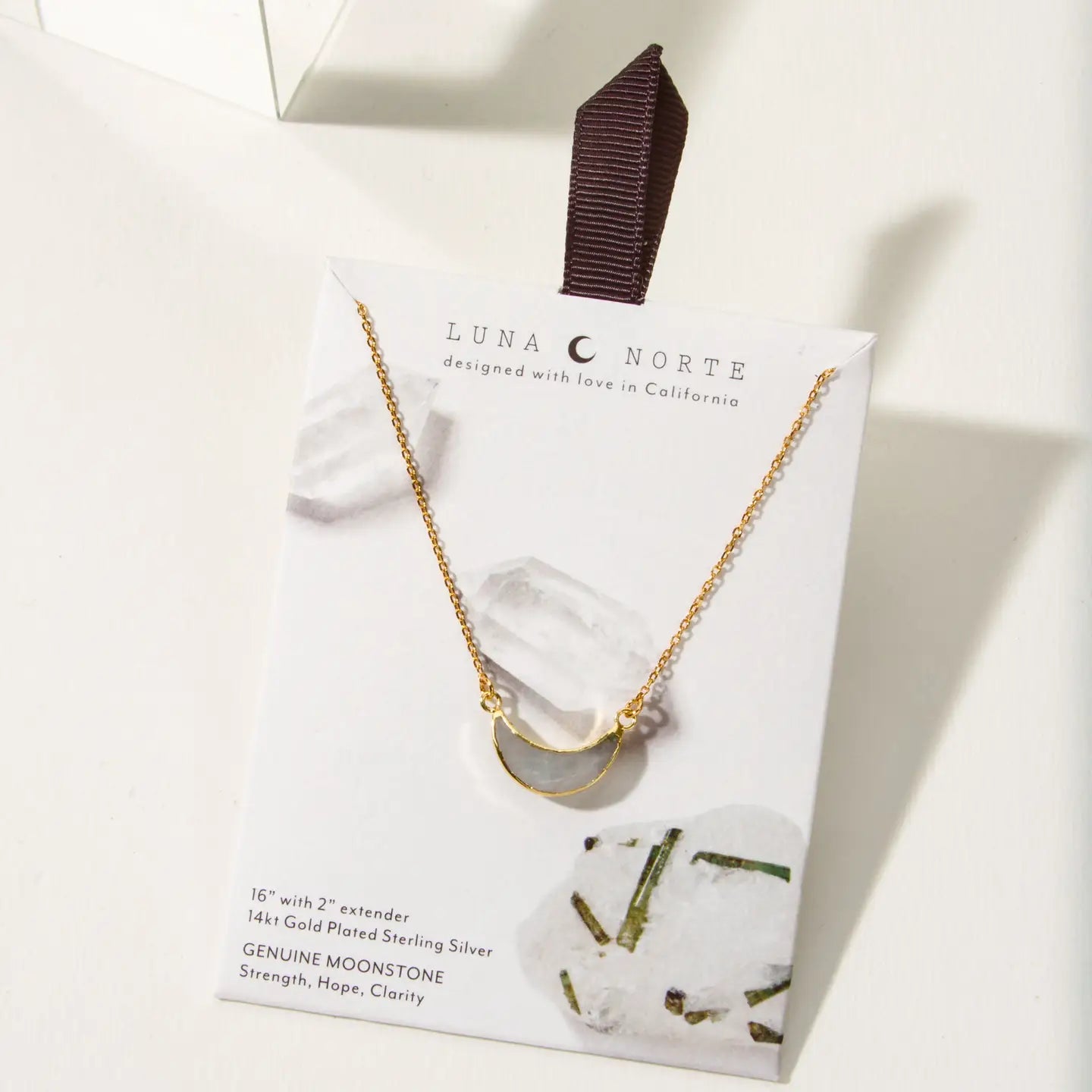 We see the same moon, you and I… Our exclusive necklace features a hand-faceted gemstone crescent moon accented with a chain that glimmers and sparkles like the night sky.