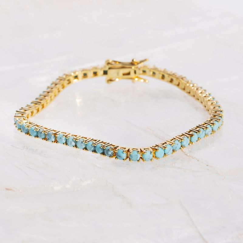 Radiating effortless charm, this 14K gold vermeil bracelet showcases a vibrant turquoise stone.